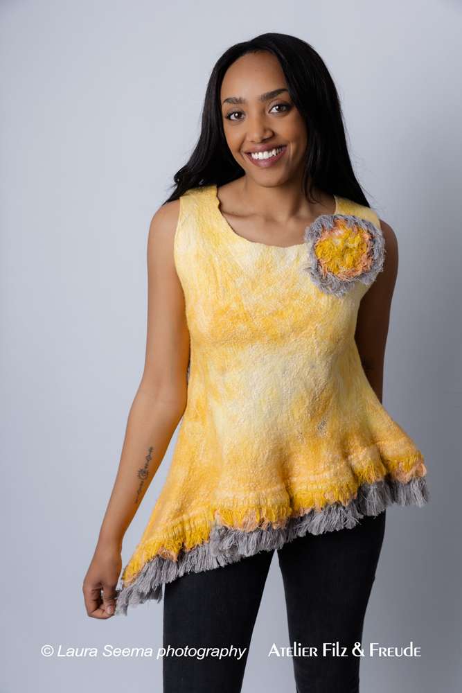 Unsere Filz-Fashion wird individuell gefertigt. Es handelt sich ausschließlich um Einzelstücke. Kaufanfragen werden individuell abgewickelt.